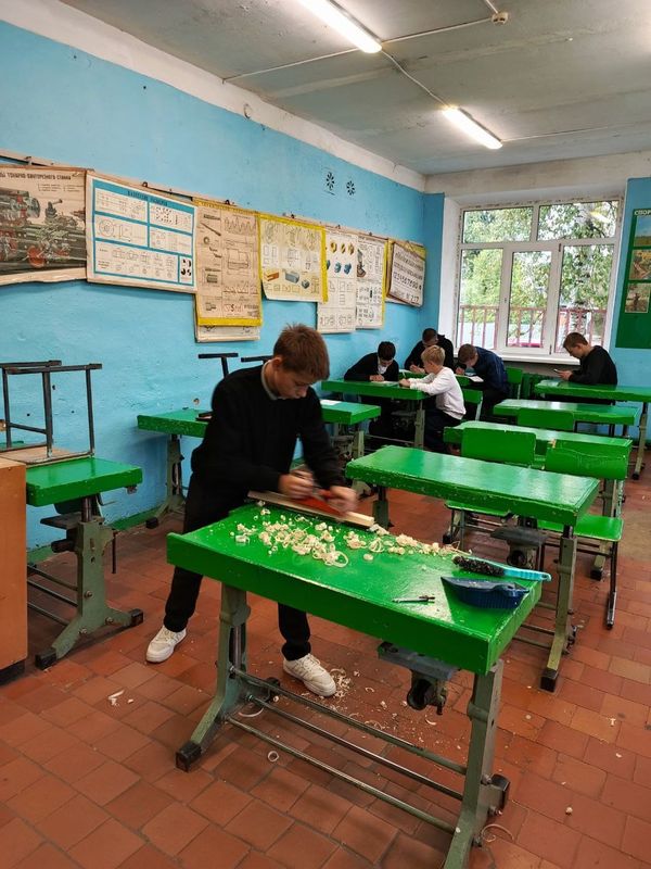 Полюбуйтесь, как старательно мастерят указки наши девятиклассники)