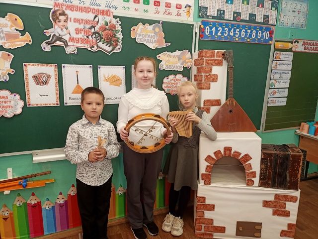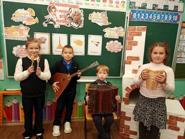 Международный день музыки во всем мире, в том числе и в России, ежегодно отмечают 1 октября.В 1а классе учащиеся.Для учащихся 1-го класса в рамках празднования Международного дня музыки прошло досуговое мероприятие"Музыкальный калейдоскоп". Ребята посмотрели презентацию "В мире музыки",узнали какие бывают инструменты.Советник по воспитанию Чернышова Л.П. познакомила детей с русскими народными инструментами. Ученики попробовали поиграть на некоторых инструментах и больше всего понравились трещотки!Также ребята узнали историю народных инструментов,почему их называют "народными".