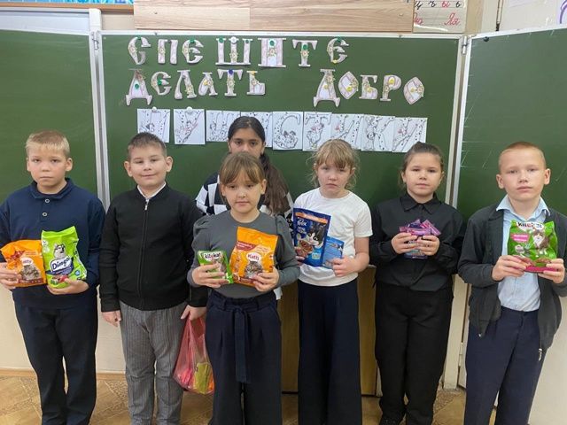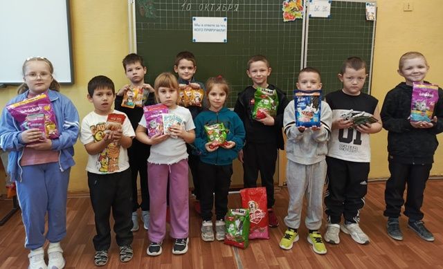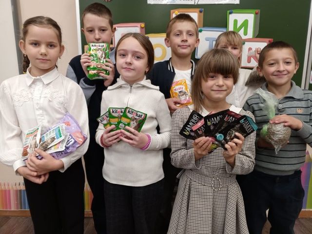 В Международный день защиты животных в школе началась акция "Мы в ответе за тех, кого приручили". Дети и родители приносили корм для собак и кошек. Весь корм передан группе "Бездомные животные".