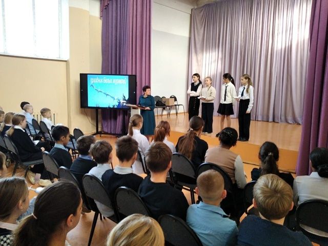 Мероприятие началось с торжественного собрания в актовом зале школы, где Беляева Н.И. рассказала о значении праздника и символике белого журавля, который стал символом памяти и надежды. Учащиеся с интересом слушали рассказ о традициях, связанных с этим днем, а также о важности сохранения исторической памяти.