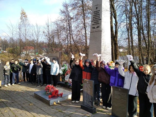 Завершением мероприятия стало возложение белых журавлей к воинскому захоронению на улице Комсомольская. Ученики, держа в руках бумажные журавлики, с трепетом подошли к памятнику, который хранит память о тех, кто не вернулся с войны. Каждый журавлик стал символом искренней благодарности и уважения к подвигу защитников Родины.