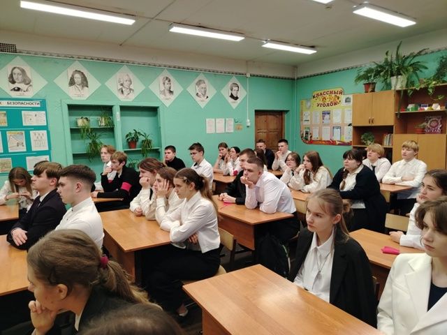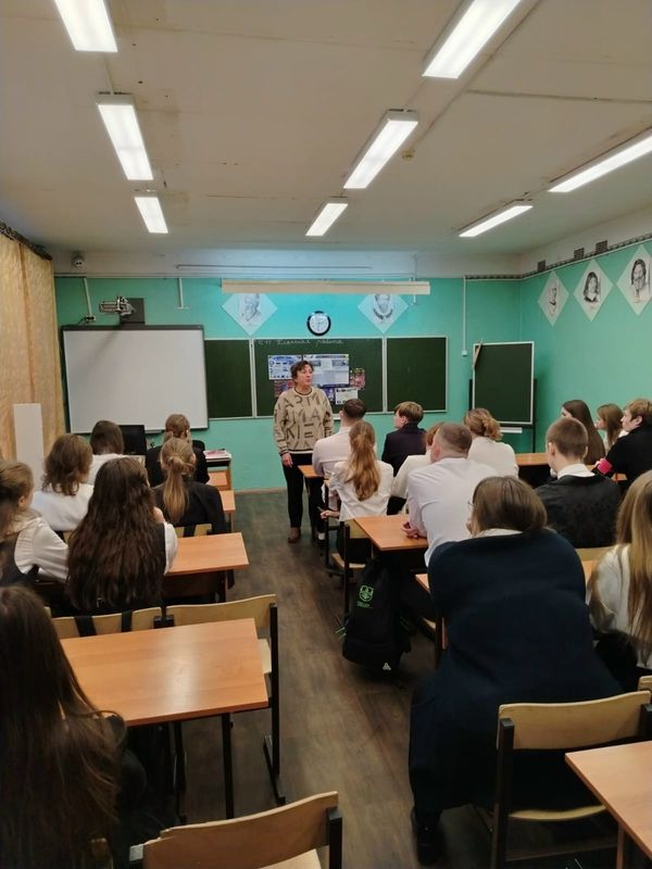 10 ноября 2025 года в рамках профориентации для обучающихся 10-11 классов Школы №4 старший помощник начальника отделения по призыву граждан на военную службу Шляхтина Ирина Александровна рассказала о различных вариантах получения военного образования, а также о преимуществах и льготах, связанных с этой сферой.