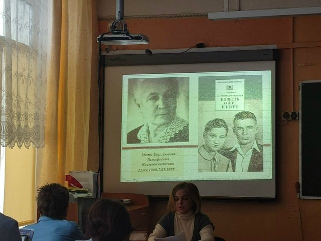 Сотрудник детской библиотеки Юлия Панкова по инициативе Советника по воспитанию организовала внеклассное мероприятие для обучающихся 7-х классов, посвященное героической судьбе Зои Космодемьянской — одной из самых известных советских девушек-партизан, чья храбрая борьба против фашистской оккупации стала символом мужества и патриотизма.