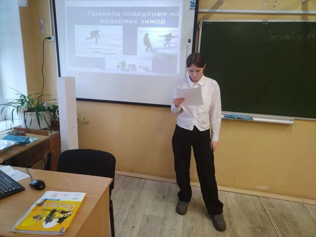 В целях обеспечения безопасности обучающихся, профилактики травматизма на водных объектах в зимний период, предупреждения несчастных случаев на водоемах в связи с возможным выходом обучающихся на лед, в рамках Месячника по безопасности с 15 декабря по 19 декабря в школе с 1 по 11 класс прошли внеклассные мероприятия «Правила поведения на водоемах в зимний период». Были показаны презентации, фильмы, мультфильмы, проведены игры, практические занятия и т.д.