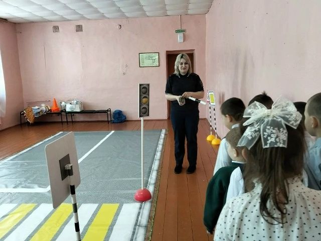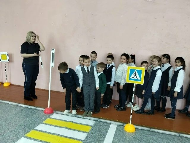 В ходе урока Арина Курбановна напомнила первоклассникам о правилах перехода проезжей части, о соблюдении мер безопасности при переходе дороги, о том, что нужно убедиться в том, что их заметили и все транспортные средства остановились. Особое внимание обратила на капюшоны, глубоко одетые шапки, телефоны и посторонние разговоры, которые ограничивают обзор пешеходу и создают опасность вовремя не заметить приближающийся автомобиль.