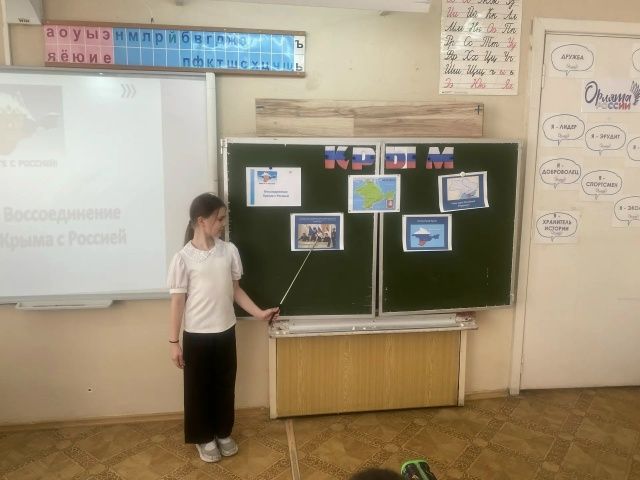 Сегодня в начальной школе был проведен единый информационный час на тему «Крымская весна. Мы вместе!» в рамках празднования «Крымской весны" Дети узнали о событиях 2014 года в Крыму, а самое главное, о подписании 18 марта 2014 года договора о вступлении Республики Крым и города Севастополя в состав Российской Федерации.