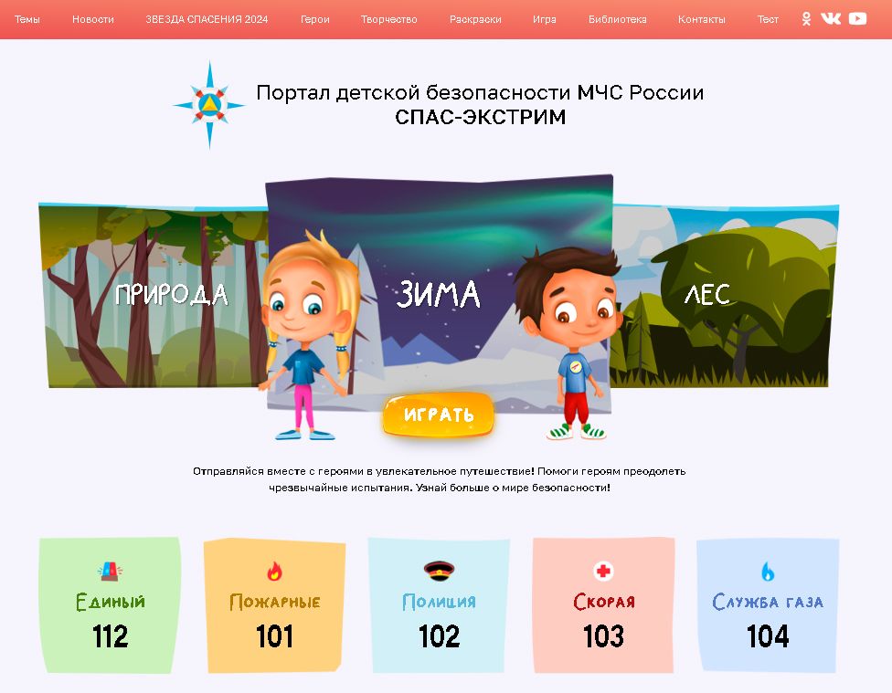 Портал детской безопасности Министерства Российской Федерации по делам гражданской обороны, чрезвычайным ситуациям и ликвидации последствий стихийных бедствий «Спас-Экстрим».
