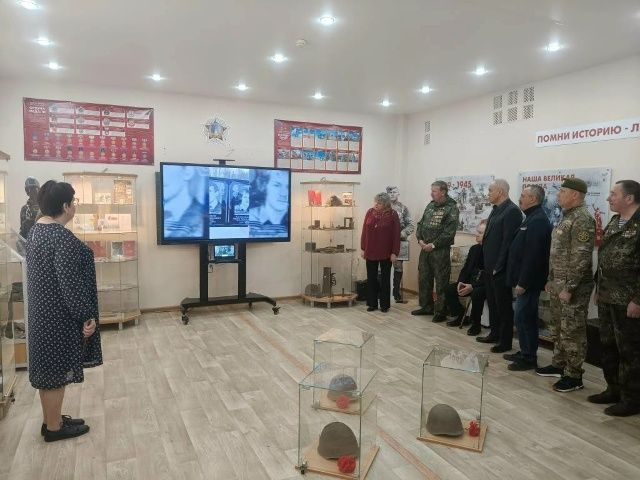 а также представители местного отделения Всероссийской общественной организации ветеранов «Боевое братство».Гости с волнением слушали обзорную экскурсию которую провели директор школы Е.Г.Подрезова, заместитель директора по учебно- воспитательной работе О.А.Колеватых и советник директора по воспитанию Л.П.Чернышова. После экскурсии завязалась беседа о сохранении памяти ,о будущих поколениях,в ходе которой определились дальнейшие перспективы по сотрудничеству. Гости оставили отзыв в книге музея.