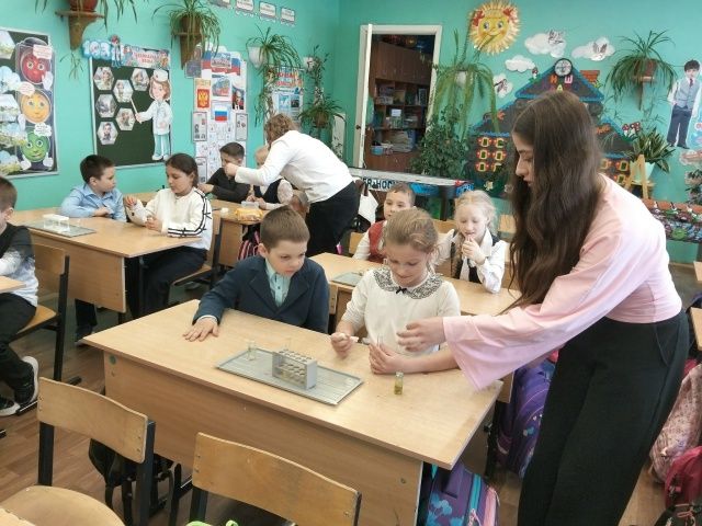 В нашем 1а классе накануне праздника "Дня Земли"прошло удивительное занятие, которое надолго запомнится нашим маленьким исследователям! К нам в гости пришли учитель биологии Цветкова Анастасия Сергеевна и активные члены клуба юннатов любителей природы, чтобы провести серию увлекательных опытов с водой.Ребята узнали о способах очистки воды и провели простой эксперимент по выявлению хлора и железа в воде.Ребята были в восторге! Глаза горели любопытством, и каждый хотел попробовать всё сам. Они активно участвовали в экспериментах, задавали вопросы и делали собственные выводы.